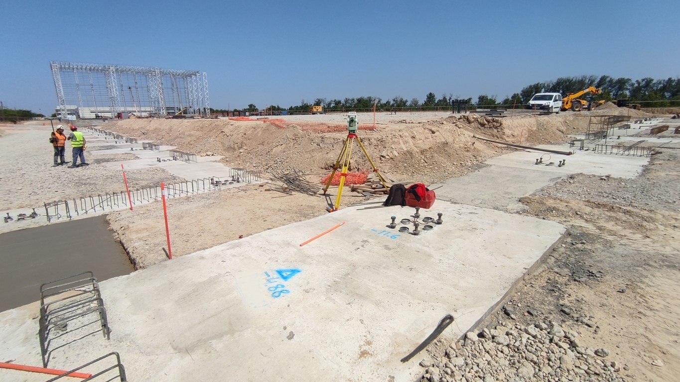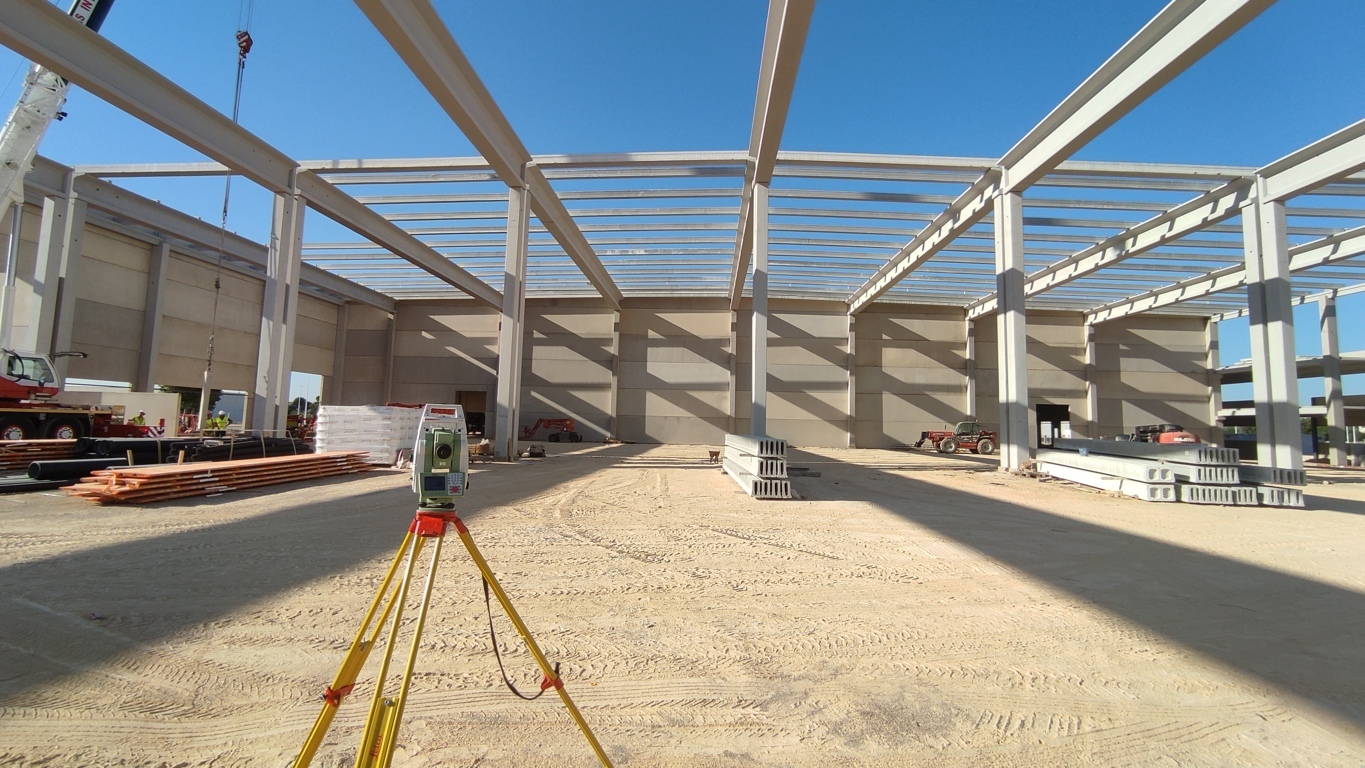 - Asistencia topográfica para montaje de pilares, vigas y paneles prefabricados en la construcción de nave industrial en Sollana (Valencia).